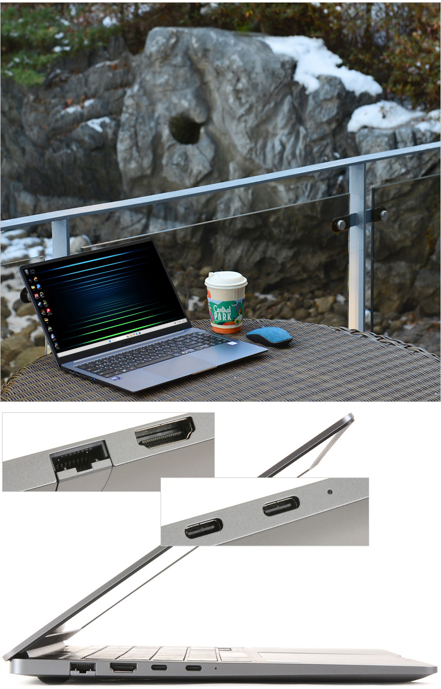 고급스러운 디자인과 뛰어난 휴대성도 무척 마음에 든다. 플라스틱 소재를 사용한 보급형 모델들과는 확연히 다른 마감 완성도를 보여 주었으며 15.6형 대화면을 지원함에도 무게가 1.55Kg 에 불과할 뿐만 아니라 두께도 상당히 날렵해 편하게 들고 다니며 사용할 수 있다. 배터리 사용시간도 상당히 긴 편이며 PD충전을 완벽 지원해 외부에서 전원걱정 없이 사용할 수 있다.