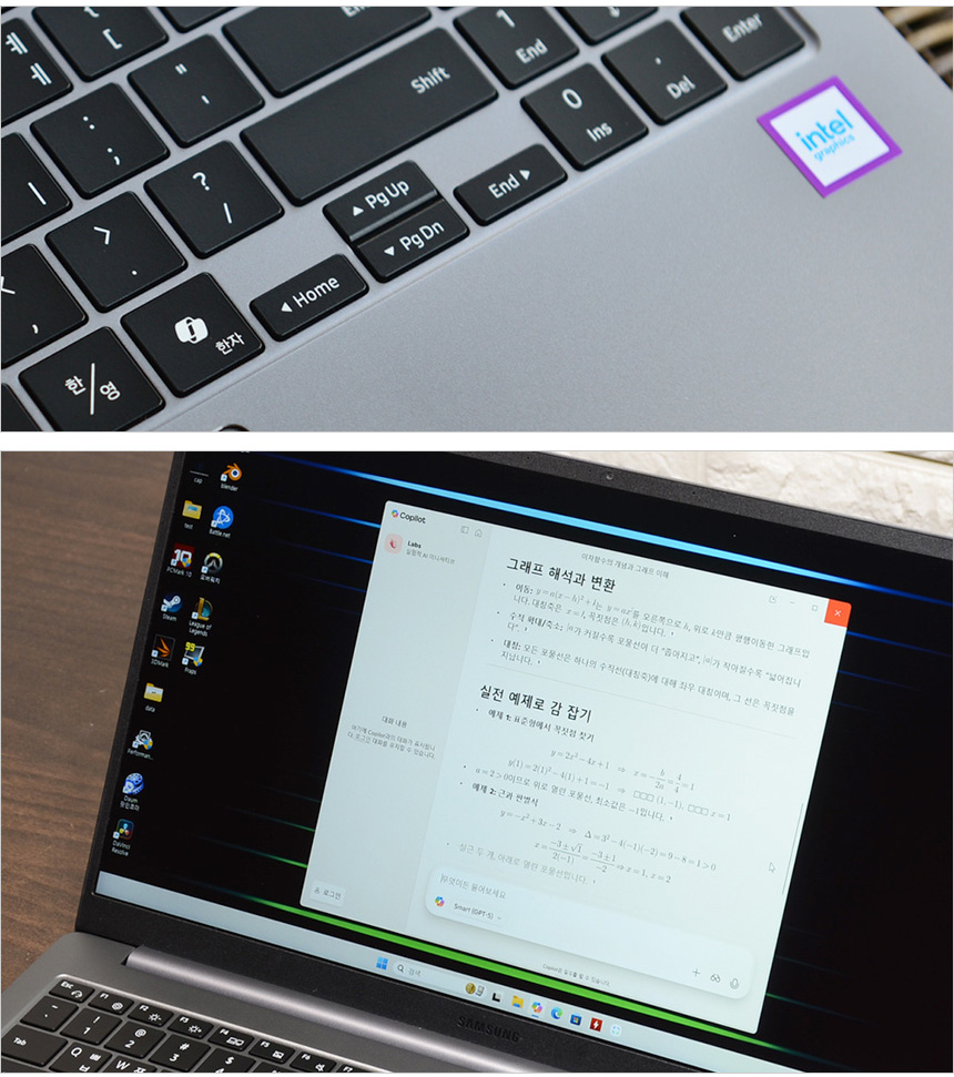 프로 시리즈에서만 지원했던 AI 셀렉트를 갤럭시북 에서도 사용할 수 있다. 상단의 사진은 앱을 활용하고 있는 모습으로 궁금한 이미지나 텍스트가 있을 때 별도의 검색어를 입력할 필요없이 터치로 원을 그려주면 빠르게 검색되는 것을 확인할 수 있었다. (동영상을 통해 사용방법을 자세히 확인하기 바란다.)