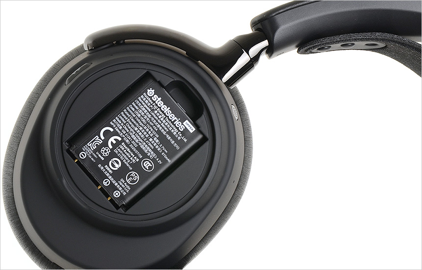 유닛의 스피커 플레이트가 분리되어 손쉽게 교체할 수 있으며 (마그네틱이 부착되어 편하게 탈부착 할 수 있다.) 우측 유닛에는 리튬이온 배터리가 장착되어 편하게 교체할 수 있다. (게임 플레이중 배터리가 떨어지면 충전을 해야만 하는 일반 헤드셋과 달리 2개의 배터리를 지원해 끊킴없는 게임 플레이가 가능하다.) 또한 좌측 유닛에는 C타입 단자가 설치된 것을 확인할 수 있다.