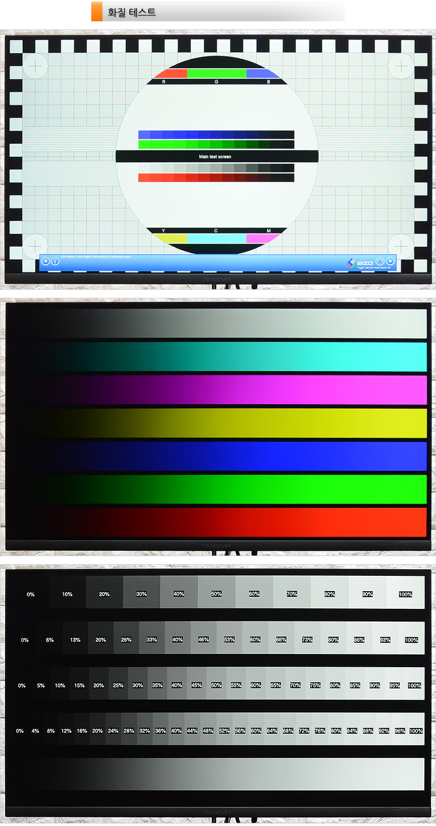 테스트 프로그램을 이용해 화질 테스트를 진행하고 있는 모습으로 IPS 패널 특유의 진한 색 표현력이 인상적이었다. 1,670만 컬러에 높은 색 재현력을 지원하는 모델로 게이밍 용도 뿐만 아니라 사진 편집이나 심플한 디자인 작업용으로도 충분히 활용할 수 있다.