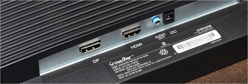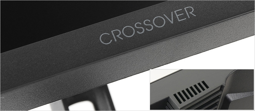 전면 하단부의 모습으로 중앙에 크로스오버 로고가 세겨져 있으며 하단에는 통풍구가 설치된 것을 확인할 수 있다. (참고로 스피커는 지원하지 않는다.) 크로스오버 279FG9 iPS-HDR 패스트144 게이밍은 유저들의 눈건강을 생각한 모델로 안티글레어 타입을 적용해 반사로 인한 스트레스를 최소화 했으며 블루라이트 감소와 플리커 프리 기술을 지원해 시력저하나 장시간 PC사용으로 인한 눈의 피로감을 최소화 한다.