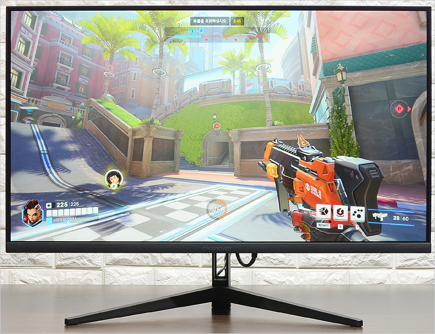 오버워치2와 배틀필드 2042를 이용해 게임 테스트를 진행하고 있는 모습으로 144Hz 주사율 특유의 부드러운 움직임이 확연히 느껴졌으며 1ms 응답속도를 지원하는 모델답게 잔상으로 인한 스트레스도 없었다. 일부 보급형 모델들과 달리 밝기가 상당히 높아 암부에서도 정확하게 캐릭터를 구분할 수 있었으며 조준선 지원으로 보다 정밀한 사격이 가능했다. 또한 IPS 패널 특유의 선명함도 무척 마음에 들었다. 보급형 게이밍 모니터와는 확연히 다른 화질을 보여주는 제품이다.