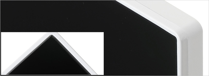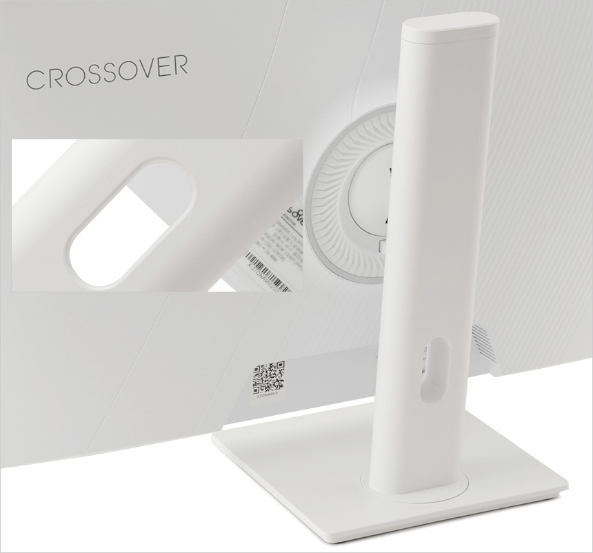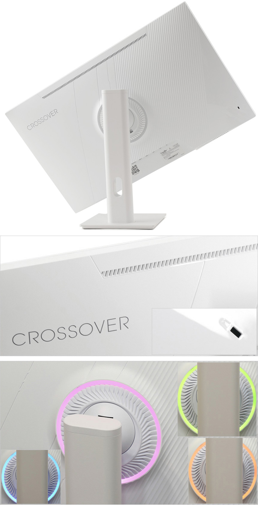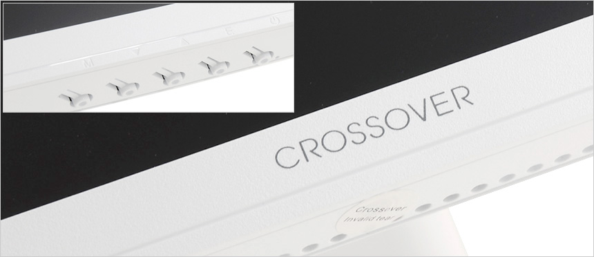 모니터 하단부의 모습으로 크로스오버 로고가 중앙에 세겨져 있으며 하단에는 OSD 버튼이 장착되어 모니터의 주요 기능을 손쉽게 조작할 수 있다. 또한 통풍구가 설치되어 있고 두 개의 3W 스피커가 장착되어 시원한 사운드를 즐길 수 있다.