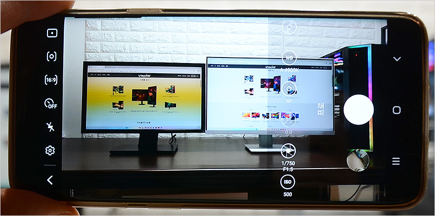 스마트폰 카메라 기능을 이용하면 모니터의 플리커 현상을 확인할 수 있다. (프로 모드에서 셔터스피드 1/300 이상으로 셋팅) 테스트용 모니터는 플리커 현상이 발생하는데 반해 크로스오버 27QNA955 에서는 깜빡임 없이 영상을 재생했다. (동영상을 통해 자세히 확인하기 바란다.)