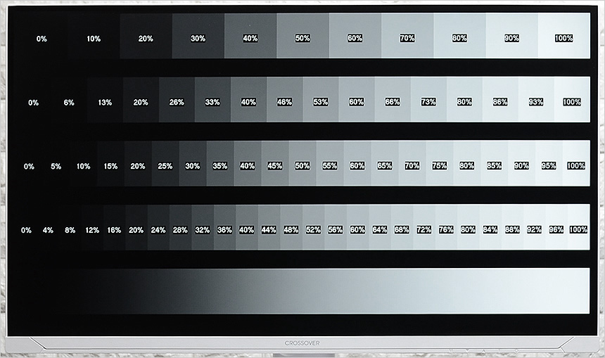 화질 테스트를 진행하고 있는 모습으로 과도하게 밝기를 올려 색감을 떨어트리는 구형 게이밍 모니터들과 달리 자연스러운 색의 표현이 인상적이었으며 고해상도 모니터 특유의 디테일도 상당히 마음에 들었다. 또한 대부분의 IPS 모니터와 같이 1,000:1 의 고정명암비를 지원하며 5백만:1의 동적명암비 설정도 가능하다. 상단의 사진은 그레이스케일 차트를 확인하고 있는 모습으로 확연한 구분감을 제공했다. (HDR을 지원해 깊이감 있는 영상을 즐길 수 있다.)