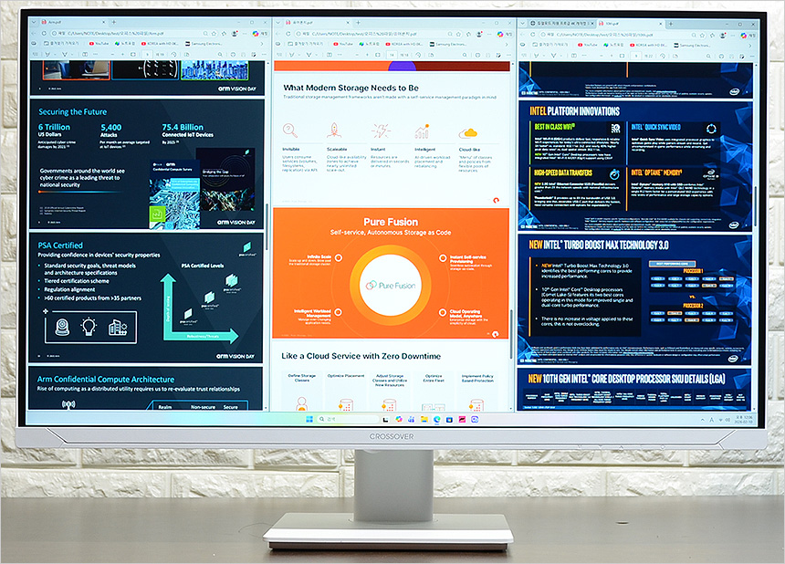리뷰를 진행한 크로스오버 27QNA955 나노IPS 210 WQHD 화이트 Ai게이밍 멀티스탠드 는 보급형 게이밍 모니터 대비 10만원 정도 높은 가격으로 판매되고 있다. 하지만 전혀 비싸다는 느낌은 들지 않았다. 성능이나 화질, 지원기능에서 보급형 모델들을 압도했기 때문이다.