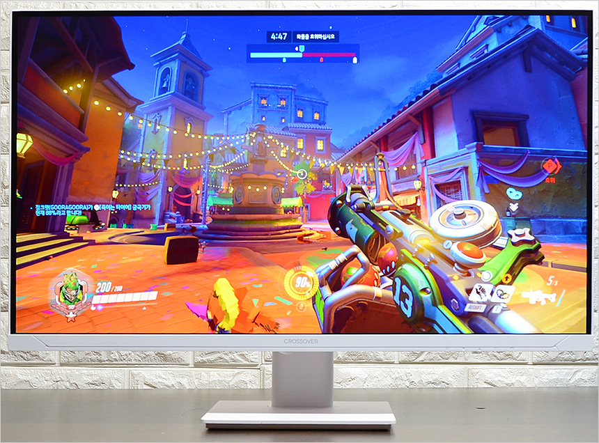 오버워치 2, 배틀필드 2042 등의 FPS 게임을 이용해 성능 테스트를 진행하고 있는 모습으로 (옵션을 낮춰 프레임을 최대한 확보했다.) 실제와 같은 자연스러운 움직임을 보여주어 편하게 캐릭터를 컨트롤 할 수 있었다. (144Hz 와는 분명한 차이를 경험할 수 있을 것이다.) 빠른움직임시 순간적으로 잔상이 발생하거나 밀리는 느낌을 주는 일반 모니터와 달리 장시간 게임을 플레이 했음에도 깔끔한 영상을 보여주어 불편함을 전혀 느끼지 않았다.