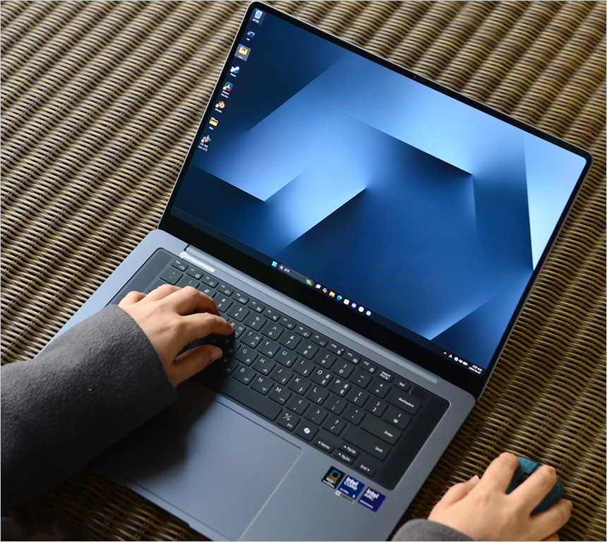 4K 고화질 동영상을 이용해 멀티미디어 테스트를 진행하고 있는 모습으로 AMOLED 특유의 진한 컬러감과 베사 HDR 기술 지원으로 깊이감 있는 영상을 즐길 수 있었으며 16형 대화면에 슬림 베젤 지원으로 높은 몰입감을 경험할 수 있었다. 폭발적인 사운드까지 더해진 노트북으로 동영상 감상용으로 유용하게 사용할 수 있을 것이다.