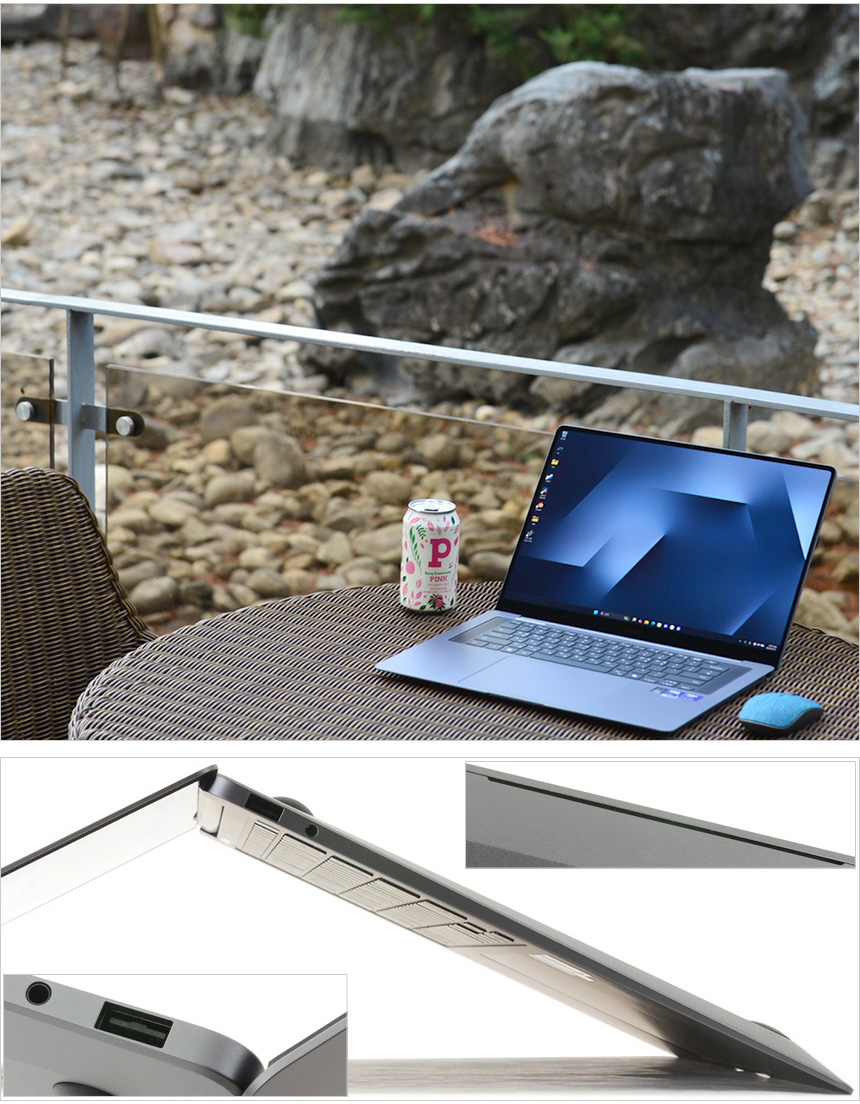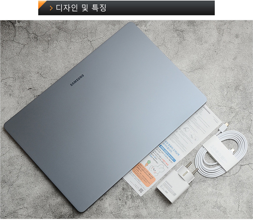 16:10 비율의 16형 대화면 노트북으로 크기가 상당하다. 하지만 3면 슬림베젤 적용으로 크기를 최소화 했을 뿐만 아니라 아주 날렵해 상단에서 언급한 것과 같이 서류가방 등에 편하게 넣고 다닐 수 있다. 특히 동급 최강의 긴 배터리 사용시간을 지원할 뿐만 아니라 PD충전도 가능해 배터리 걱정없이 외부에서 사용할 수 있는 장점을 가지고 있다.