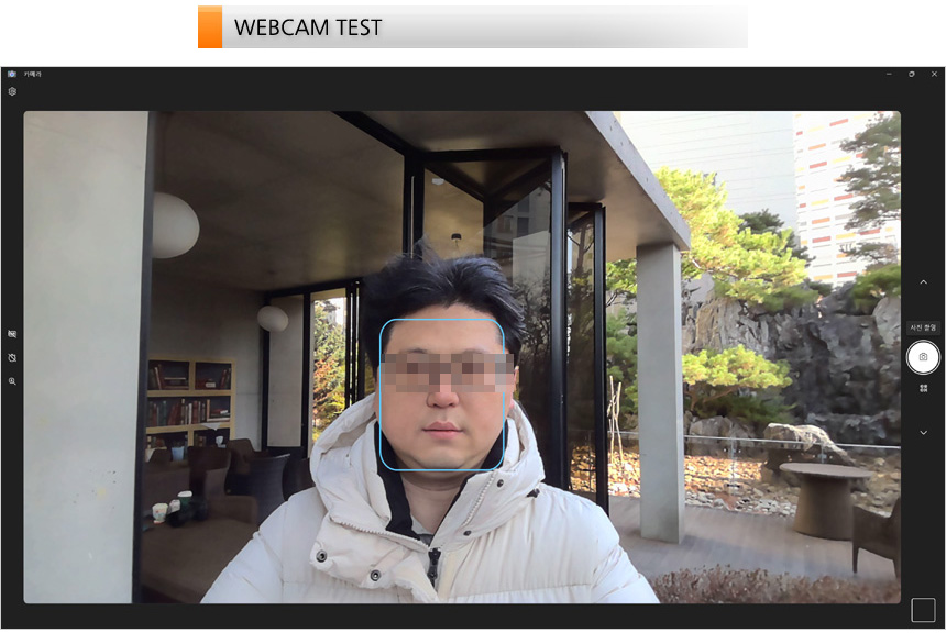 웹캠의 화질을 확인하고 있는 모습으로 2MP 해상도를 지원해 HD 웹캠과는 확연히 비교되는 디테일과 색감을 보여주었다. (삼성 특유의 부드러운 피부톤 표현은 여전하다.) 특히 스튜디오 효과를 사용하면 배경을 날려 버리거나 사용자에게 화면이 맞춰지는 자동 프레이밍 등을 활용할 수 있어 화상화의 등에서 편하게 사용할 수 있다.