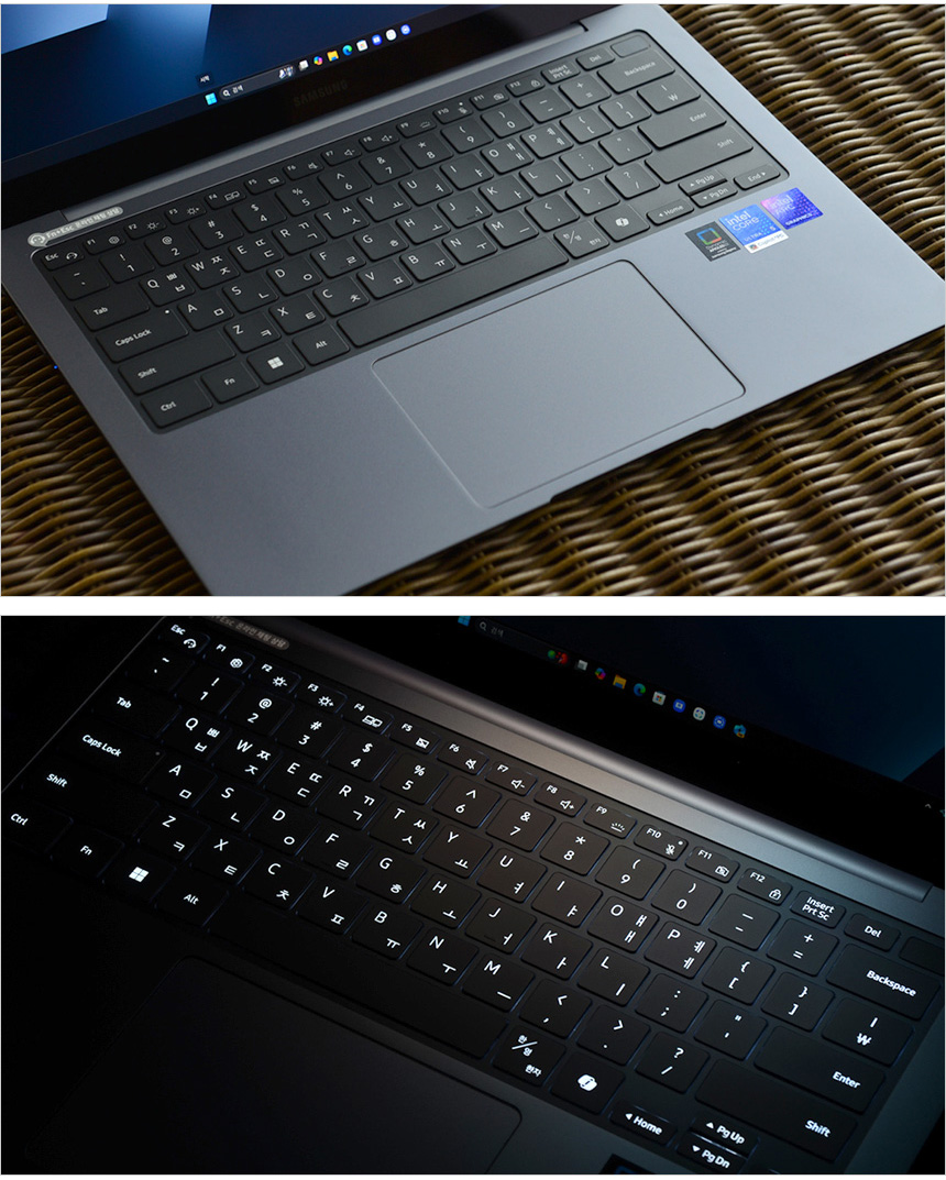 삼성 프로 키보드의 모습으로 휴대성에 특화된 노트북이지만 키간격이 넓어 여유로운 고속 타이핑이 가능하다. 또한 ON/OFF 및 밝기 조정이 가능한 백라이트를 지원해 야간에도 편하게 사용할 수 있다.