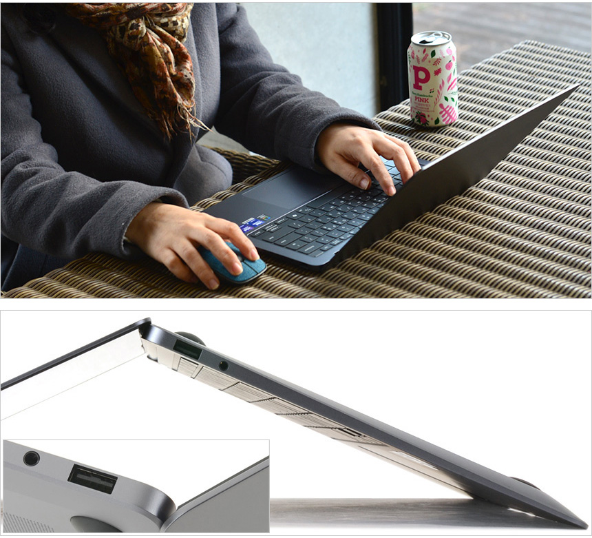 314.2 x 220.6 x 11.6mm 의 크기와 1.24Kg 의 무게를 지원한다. 1.5Kg 이상의 일반적인 프리미엄 슬림 노트북과 달리 1Kg을 살짝넘은 가벼운 무게로 장시간 휴대시 피로감을 최소화 했으며 작은 크기로 휴대성을 한층 높였다. 집이나 사무실 뿐만 아니라 강의실이나 커피숍 등 다양한 장소에서 노트북을 사용해 항상 휴대해야 한다면 좋은 선택이 될 것이다.