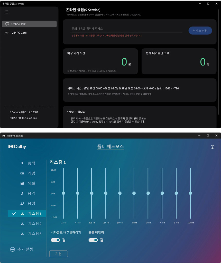 돌비 애트모스 지원으로 사용자에 맞는 최적의 음색을 설정할 수 있으며 노트북에 문제가 생겼을 때 온라인 상담을 통해 손쉽게 문제를 해결할 수 있다.