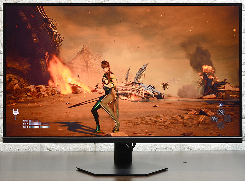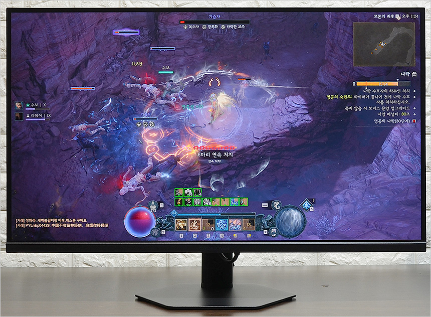 디아블로 4 와 스텔라 블레이드를 테스트 하고 있는 모습으로 IPS 특유의 선명한 색감이 돋보였으며 두게임 모두 배경이 어두운 편이지만 높은 밝기를 지원할 뿐만 아니라 블랙레벨 설정이 가능해 캐릭터와 배경을 구분하는데 문제가 전혀 없었다. (집에서 디아블로 4를 플레이 하다보면 나락등에서 어두운 곳이 검게 뭉개져 답답함을 느낄때가 많다.)