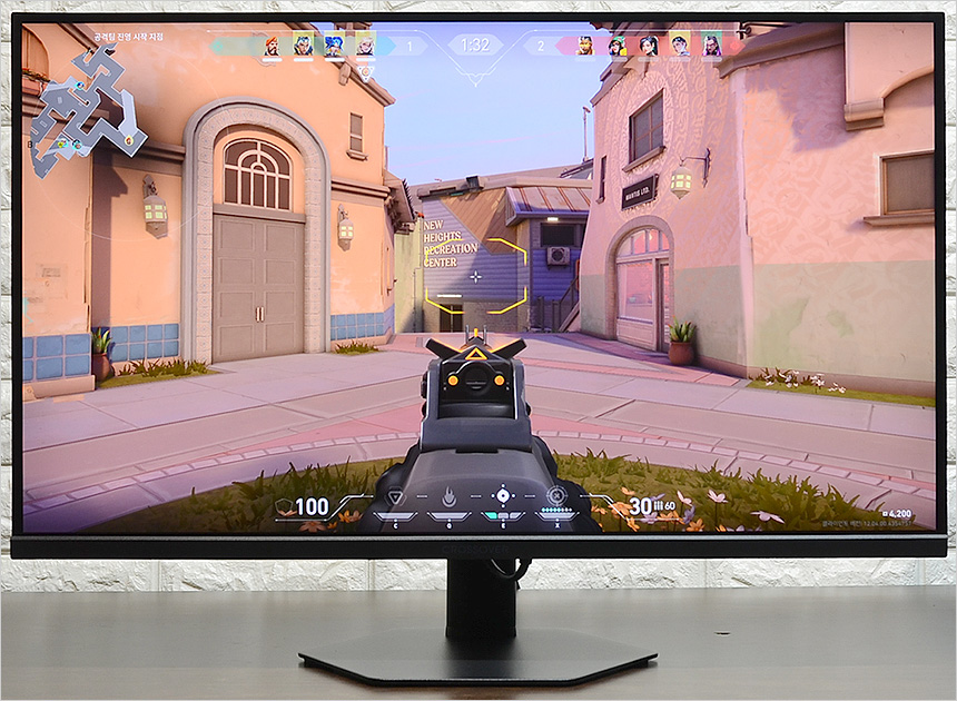 게이밍 모니터 전문기업인 크로스오버의 DNA가 이식된 모델답게 다양한 게이밍 성능이 출중한 것도 마음에 든다. 120Hz 주사율과 5ms 응답속도 지원으로 FPS 게임도 충분히 즐길 수 있었으며 프리싱크와 지싱크 어댑티브 지원으로 화면 찢어짐 등으로 인한 불편도 없었다. 또한 조준선 지원으로 편하게 에임을 잡을 수 있었으며 게임모드와 블랙래벨 지원으로 실내나 야간맵에서도 배경과 캐릭터를 확연하게 구분할 수 있었다.