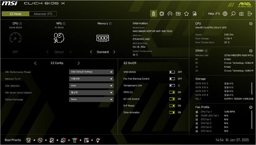 리뷰에 사용된 MSI MAG B860 토마호크 WIFI 메인보드는 인텔코어 울트라 K프로세서나 고성능 논K 프로세서를 위한 고급형 메인보드로 (테스트에 사용된 250K Plus 뿐만 아니라 270K Plus에서도 사용 가능하다.) 강력한 전원부를 지원하는 것은 물론 사용자 편의성을 높인 EZ DIY 설계, Wi-Fi 7 의 향상된 네트워크로 전작과는 확연히 다른 사용성을 제공한다.
