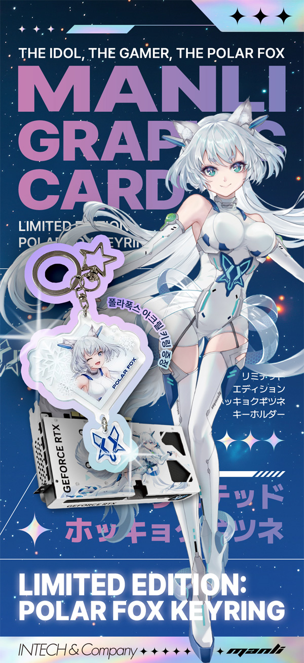 인텍앤컴퍼니가 MANLI 그래픽카드 전 제품 구매 고객을 대상으로 한정판 ‘폴라폭스(Polar Fox)’ 캐릭터 아크릴 키링 증정 이벤트를 실시한다고 밝혔다. 본 이벤트는 재고 소진 시까지 선착순으로 진행되며, 별도 응모 절차 없이 구매 시 자동 증정된다.