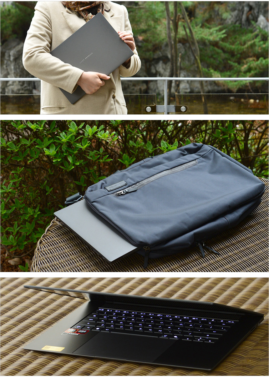 16형 대화면 디스플레이를 탑재했음에도 무게가 1.5Kg에 불과하며 상당히 날렵해 편하게 들고다니며 테스트를 할 수 있었다. 24시간 이상의 긴 배터리 사용시간을 보여 주었을 뿐만 아니라 PD충전도 지원해 배터리 걱정없이 사용할 수 있으며 미국 국방성 군사 규격 MIL-STD-810H 밀리터리 등급 표준을 충족하는 높은 내구성으로 안심하고 외부에서 아용할 수 있다.
