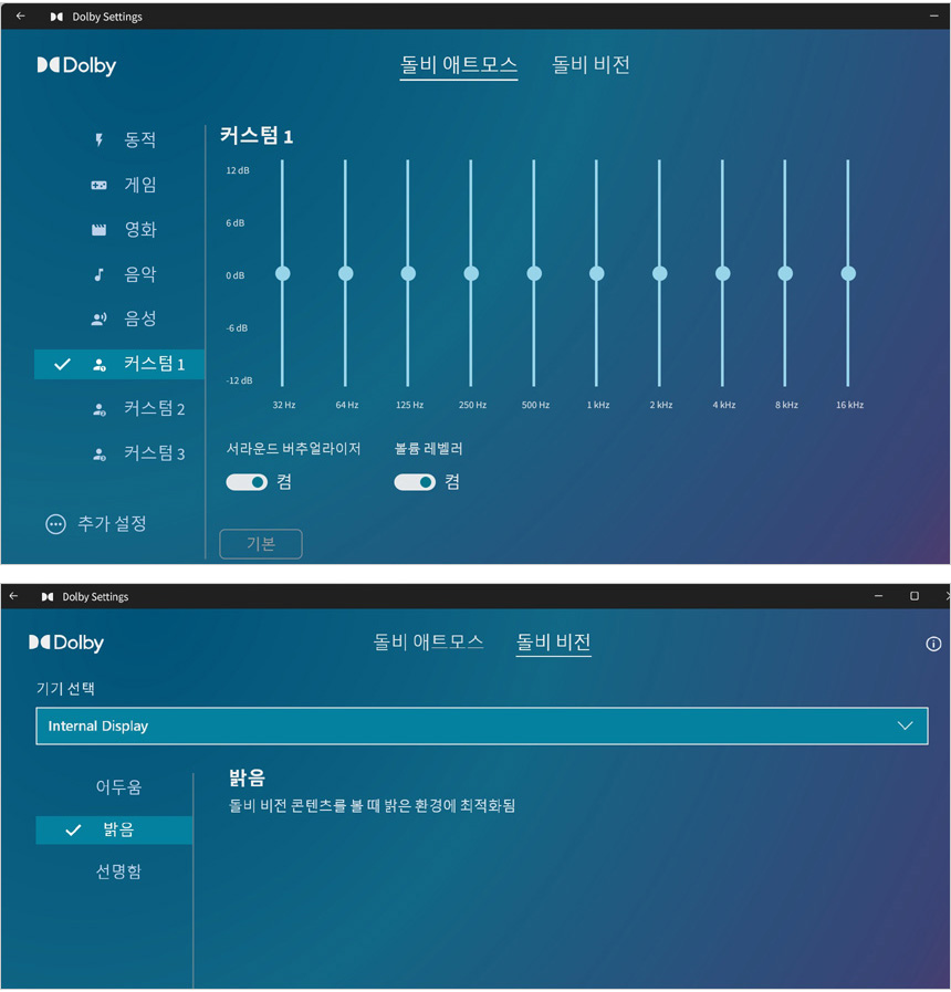 돌비 애트모스를 기본 지원해 입체감있는 사운드를 즐길 수 있으며 (설정에서 EQ와 다양한 프로파일을 지원해 자신만의 음색을 설정할 수 있다.) 돌비 비전도 지원해 사용자에 맞게 디스플레이를 설정할 수 있다.