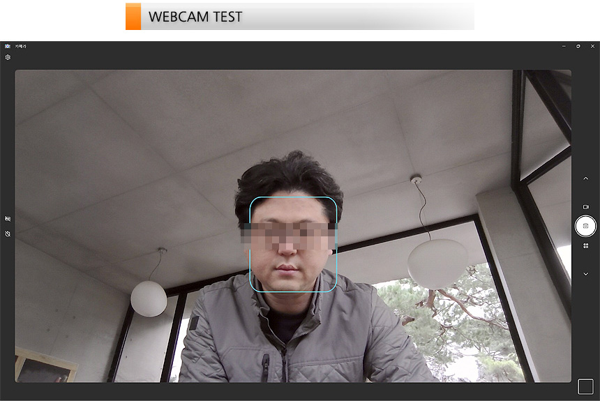 카메라 화질을 확인하고 있는 모습으로 FHD 해상도를 지원해 HD 웹캠과는 확연한 차이를 보여주었다. 화상회의가 많은 재택근무자나 파견 및 출장이 잦은 직장인 들이 유용하게 사용할 수 있다.