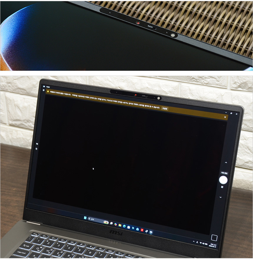 노트북에 장착된 FHD 웹캠의 화질을 확인하고 있는 모습으로 약간 거친 느낌이 있긴 했지만 선명도는 상당히 뛰어난 것을 확인할 수 있었다. 화상회의는 물론 촬영 등의 용도로 유용하게 활용할 수 있을 것이다.
