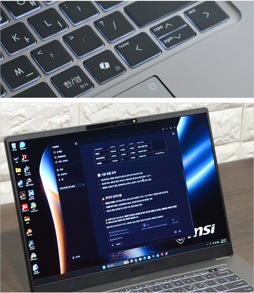 새련된 디자인도 칭찬하고 싶다. 약간은 투박했던 기존 모델들과 달리 곡선을 적용하고 마감 완성도를 높인 새로운 스타일의 MSI 노트북으로 디자인을 중요하게 생각한다면 좋은 선택이 될 것이다. (개인적으로 디자인이 아주 마음에 들었다.)
