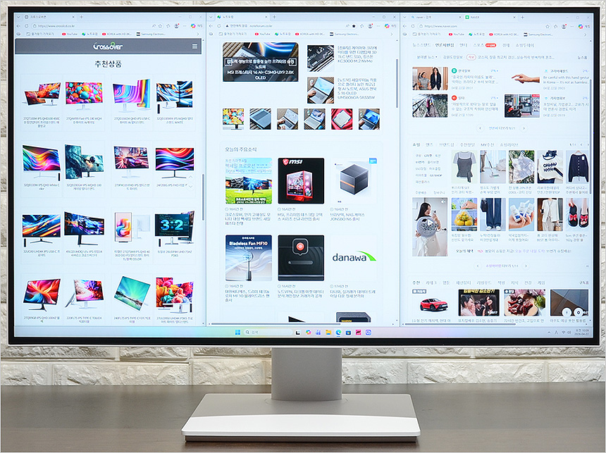 27형 크기에 QHD 해상도를 지원해 2.5~3개 정도의 창을 띄어두고 사용할 수 있다. (색상의 번짐을 최소화 하고 문자 가독성을 높여 선명한 영상을 볼 수 있게 하는 크로마서브 샘플림 4:4:4 모드를 지원해 깔끔하게 글을 읽을 수 있었다.)