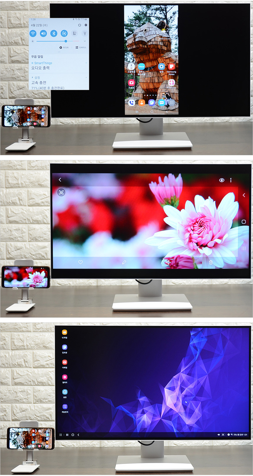 C타입 단자를 지원해 미러링을 지원하는 스마트폰과 연결해 대화면으로 영상을 즐길 수 있다. 특히 15W PD 충전을 지원해 연결만 해놓으면 자동으로 스마트폰이 충전된다. (입력여부와 상관없이 스마트폰 충전단자로 활용할 수 있다.)