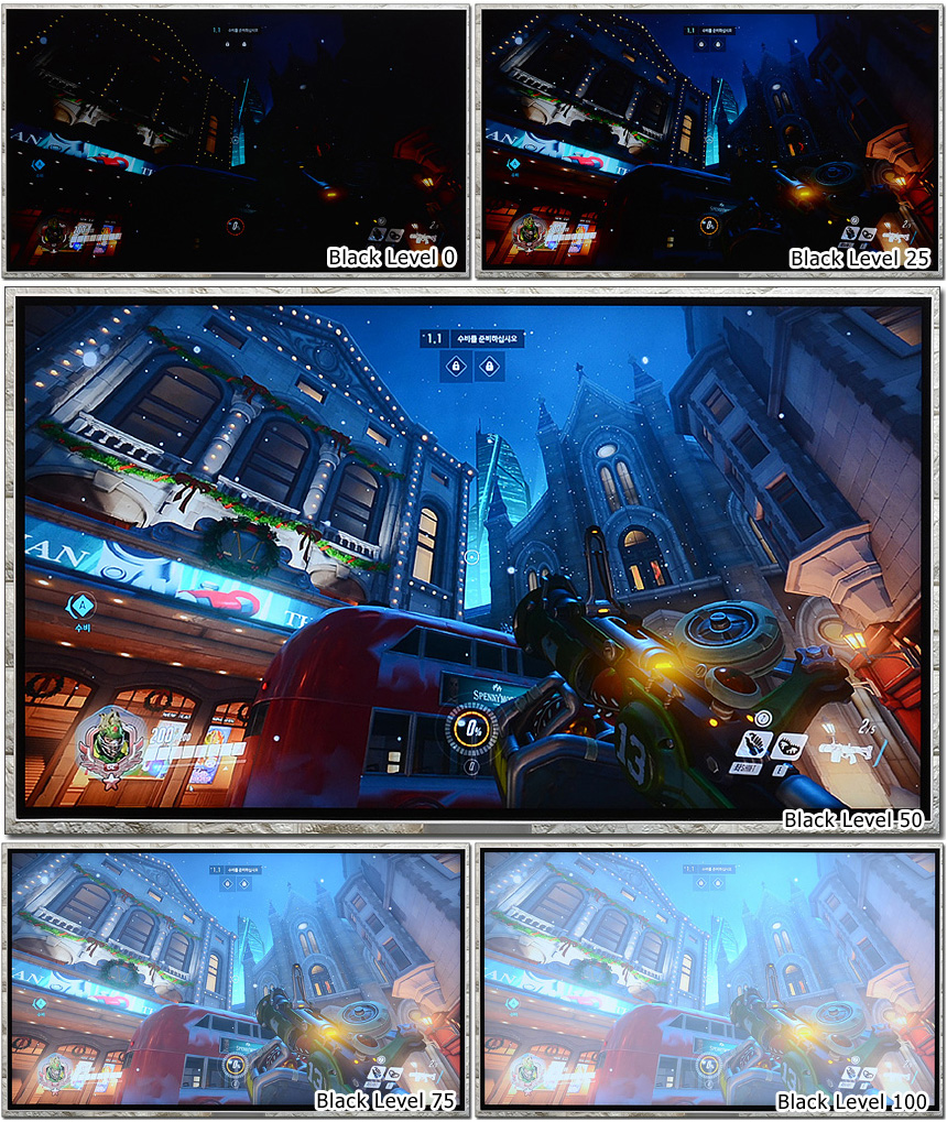 100단계 블랙레벨 설정을 지원해 게임 등에서 요긴하게 사용할 수 있다. 적절한 블랙레벌 조정을 통해 보다 선명한 영상을 즐길 수 있다. (블랙레벨을 너무 올리면 선명도가 떨어지게 된다. 자신에 맞는 적정값을 파악하고 적용하기 바란다.)