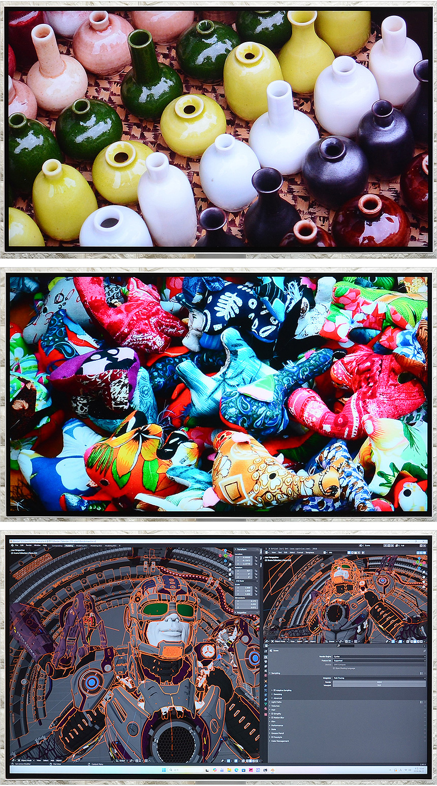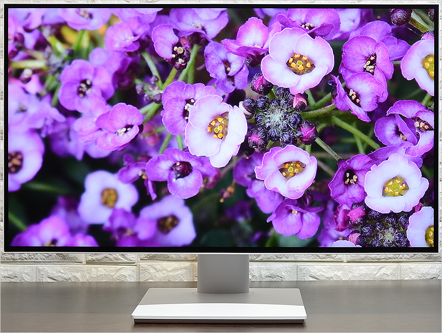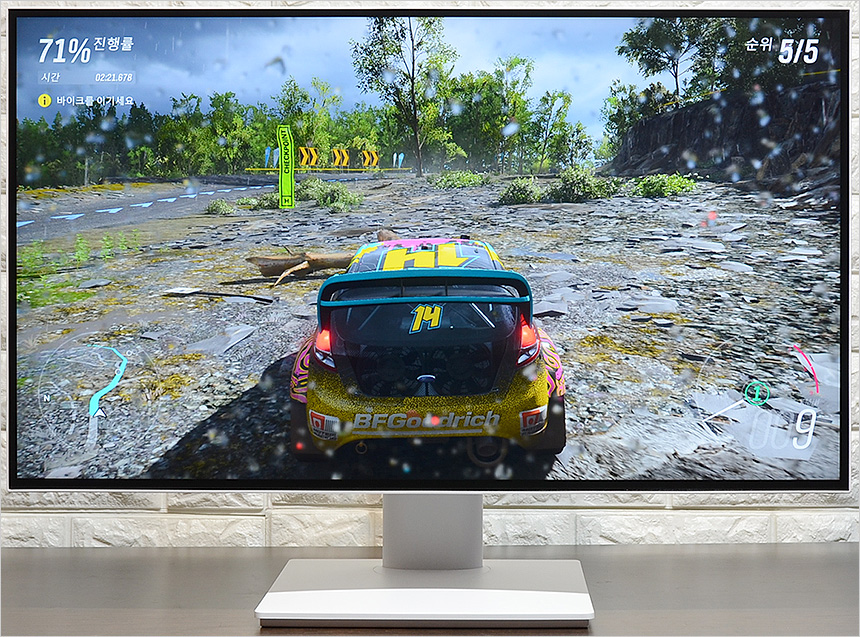 화질 테스트를 진행하고 있는 모습으로 나노 IPS 블랙패널 특유의 진한 색감이 인상적이었으며 10억 7천만 컬러를 지원해 색의 변화가 자연스러운 것을 확인할 수 있었다. 350cd/㎡로 밝기도 높은 편이며 색 재현력도 상당히 뛰어나 작업용 모니터로도 충분히 활용할 수 있다.