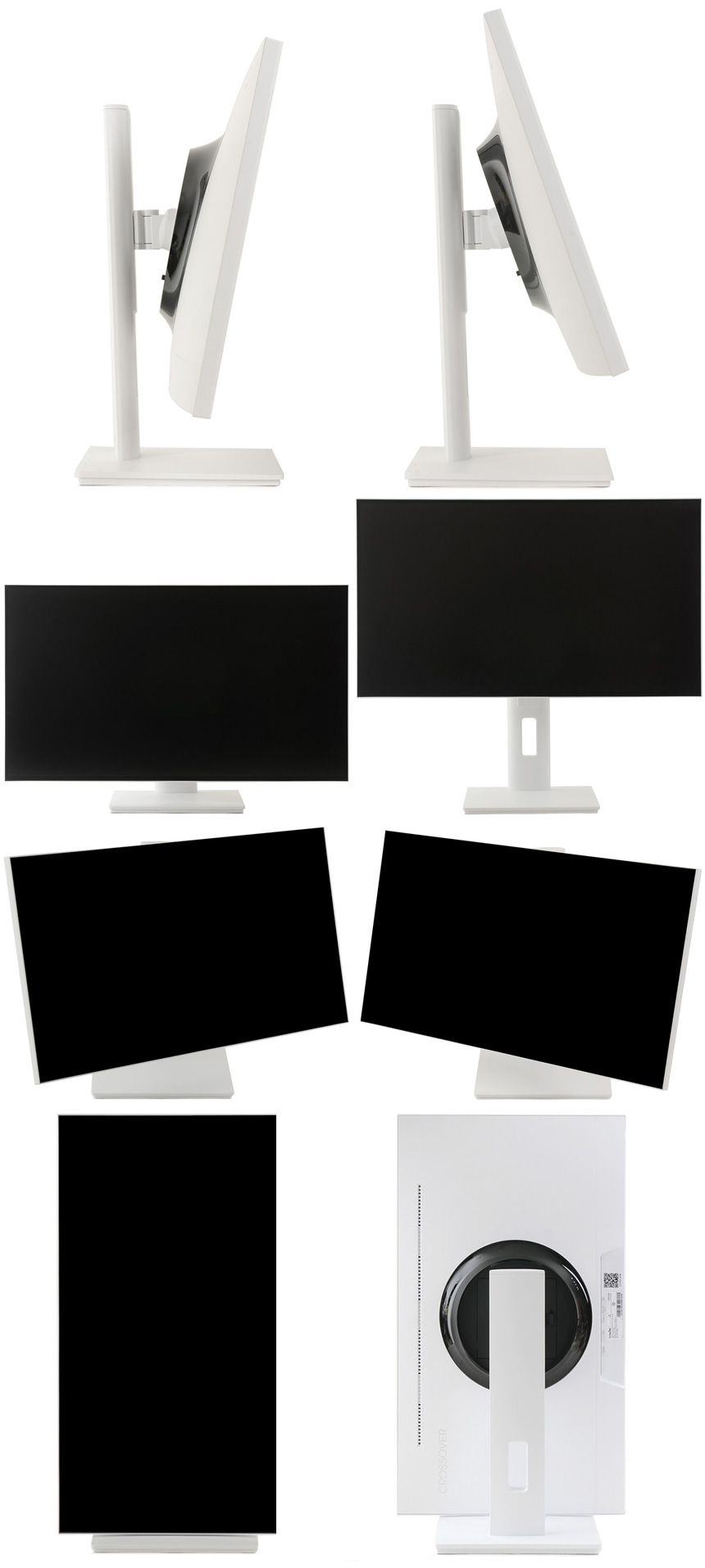 피벗을 지원하는 멀티스탠드 지원 모니터로 전자출판이나 문서확인시 세로 화면을 적용하면 편하게 작업을 하거나 글을 읽을 수 있으며 피벗을 지원해 세로영상을 풀화면으로 즐길 수 있다. (상단에서 언급한 것과 같이 좌우로 모두 회전 가능하다.)