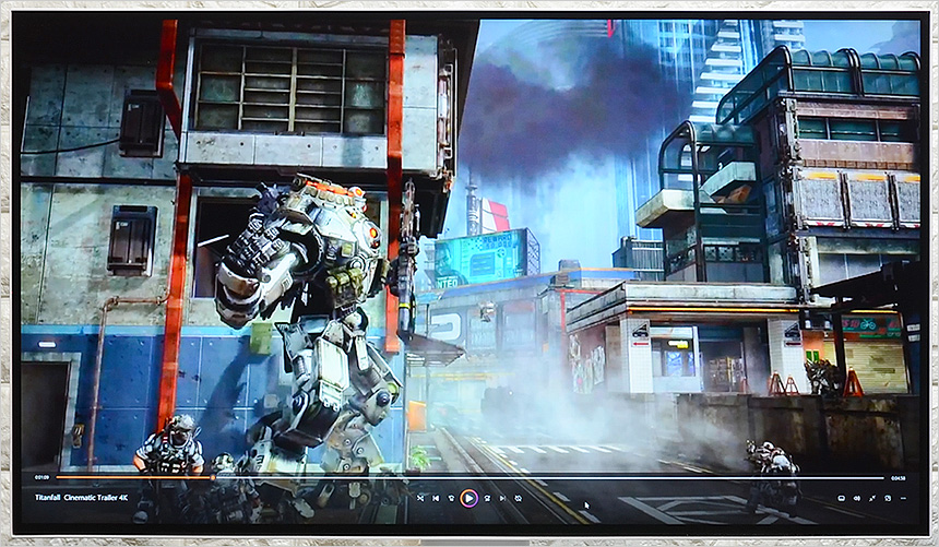 즐기는 컨텐츠에 맞게 최상의 영상을 제공하는 AI 비전 기술이 제공된다. 상단의 사진은 기본 상태와 비교한 모습으로 더 밝고 화사한 영상으로 변신한 것을 확인할 수 있다.