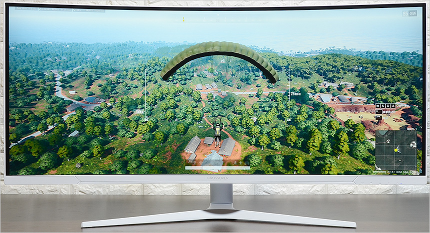 전면부의 모습으로 34형의 크기에 울트라 WQHD (3440 x 1440) 해상도를 지원하는 대기업 VA 패널이 장착되어 있다. IPS 수준은 아니지만 광시야각을 지원해 어떤 각도에서도 선명한 영상을 즐길 수 있으며 400cd/㎡ 의 높은 밝기로 야간이나 실내 맵 등에서 명확한 구분감을 제공한다.