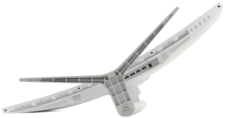 멀티스탠드가 장착되어 사용자가 원하는 대로 위치나 각도를 조절할 수 있다. 틸트 뿐만 아니라 스위블과 높낮이 조절이 가능하며 제조사에서 지원된다고 언급은 하지 않았지만 피벗도 가능해 편하게 문서등을 읽을 수 있을 뿐만 아니라 세로영상을 대화면으로 즐길 수 있다.