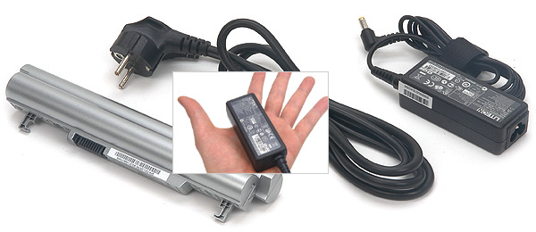 리튬이온 배터리 및 전원어뎁터 등이 기본 제공된다. (휴대성이 극대화 된 제품답게 어뎁터의 크기도 무척 작은 것을 확인할 수 있다.)